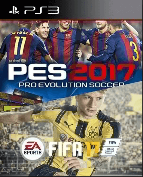 2 JUEGOS EN 1 DE FIFA 17 + PRO EVOLUTION SOCCER 2017 PS3